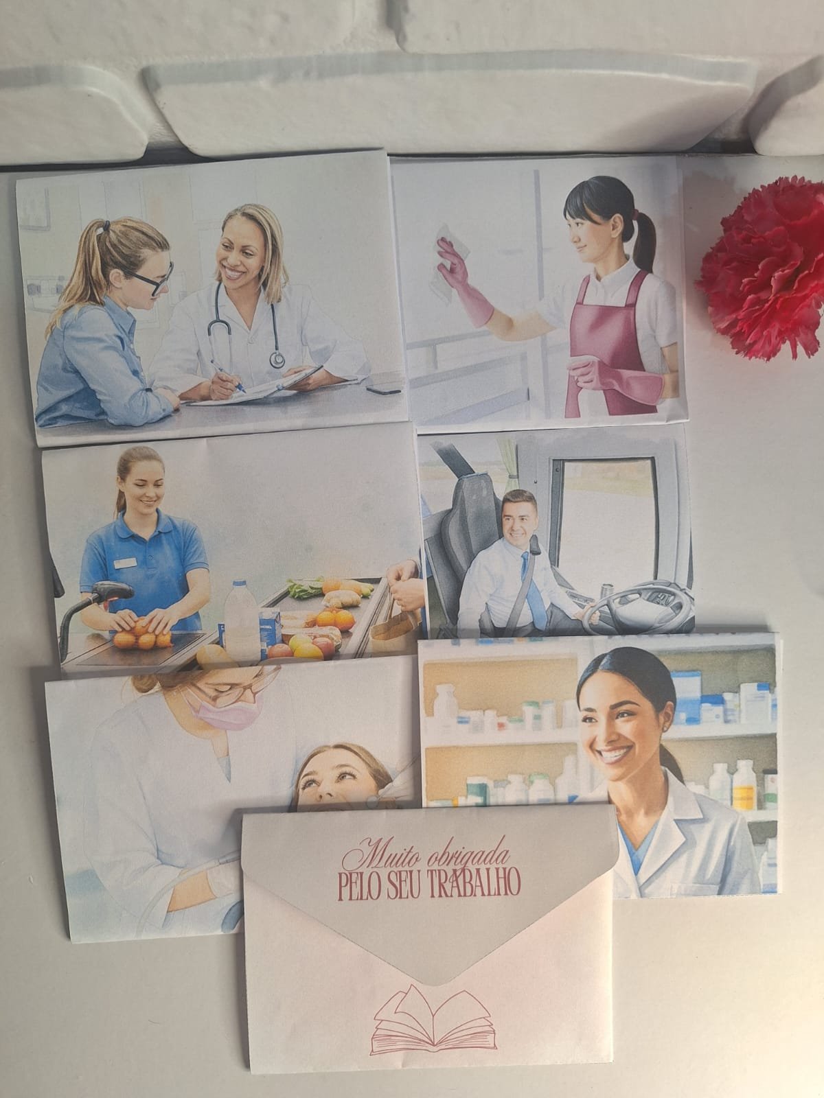 Expresse sua gratidão de forma elegante com nosso conjunto de papel e envelope para cartas de testemunho, ideal para reconhecer profissionais que fazem a diferença no dia a dia; com design refinado e opções variadas, transmite respeito e valor em cada detalhe, tornando o agradecimento ainda mais especial. O arquivo contém 8 profissões